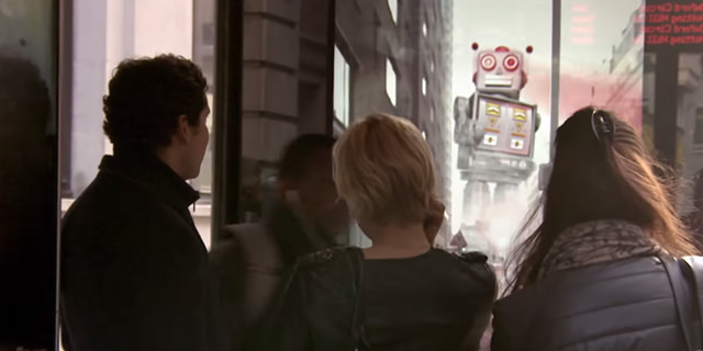 The British subsidiary of the famous soft drink has set up a bus stop adapted to augmented reality. Transparent in appearance, the bus shelter window invites the extraordinary into the streets of London and transforms the daily life of passers-by into a Hollywood blockbuster.