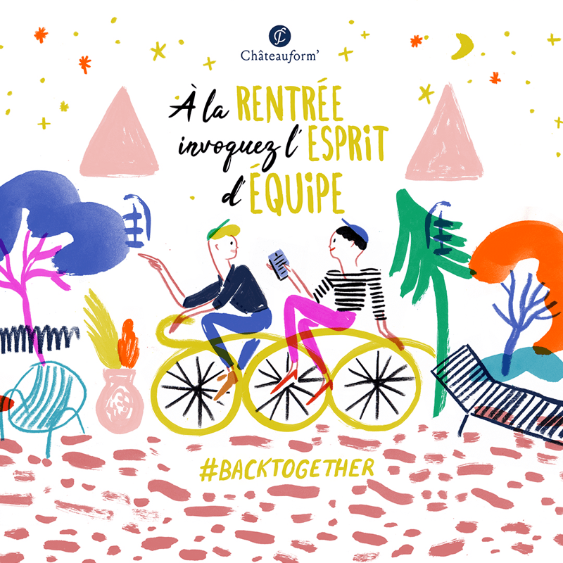 We wanted to use the illustration to draw attention to the spirit and soul of Châteauform ’without falling into classic codes. The line of childish appearance, however, has an elegance that adapts perfectly to the worlds of premium and luxury.