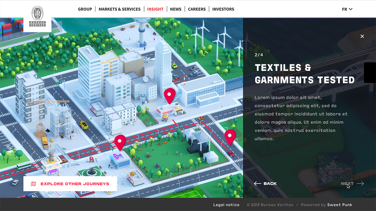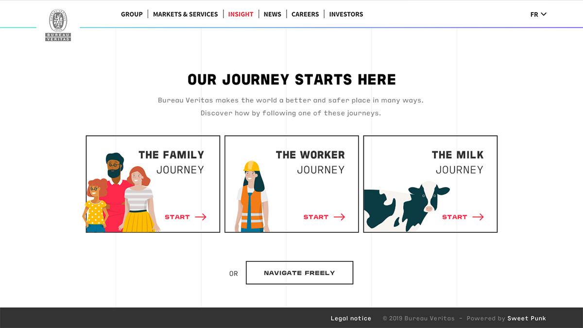 We imagined “A journey with Bureau Veritas”, an interactive experience materializing Bureau Veritas support in every detail of everyday life, thus breaking down its offer.