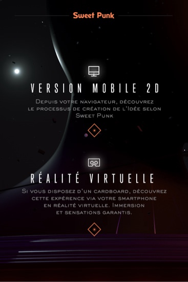 For its 2017 wishes, Sweet Punk proposed a journey into the world of the idea in 3 dimensions. An immersion made possible thanks to a cardboard sent to our customers allowing to see a video in 3D using his smartphone.