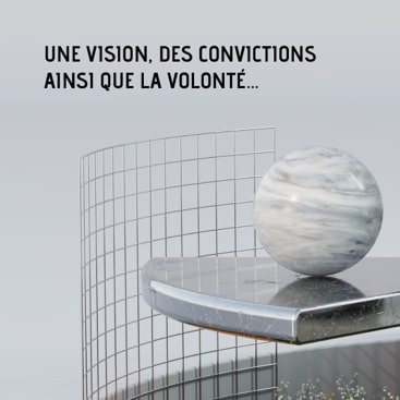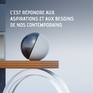 Construction games. It is precisely on this creative concept that the agency relied to illustrate a world in perpetual transformation, constantly renewing itself. The 3D realization offers a particularly satisfying aesthetic. The textures and materials reinject realism and maturity to the discourse. The simple geometric shapes give rise to an infinite number of compositions and translate the unlimited construction potential of the brand. Assertive, committed and impactful, the wording brings meaning to the image and evokes a real desire to (co)build the world of tomorrow.
