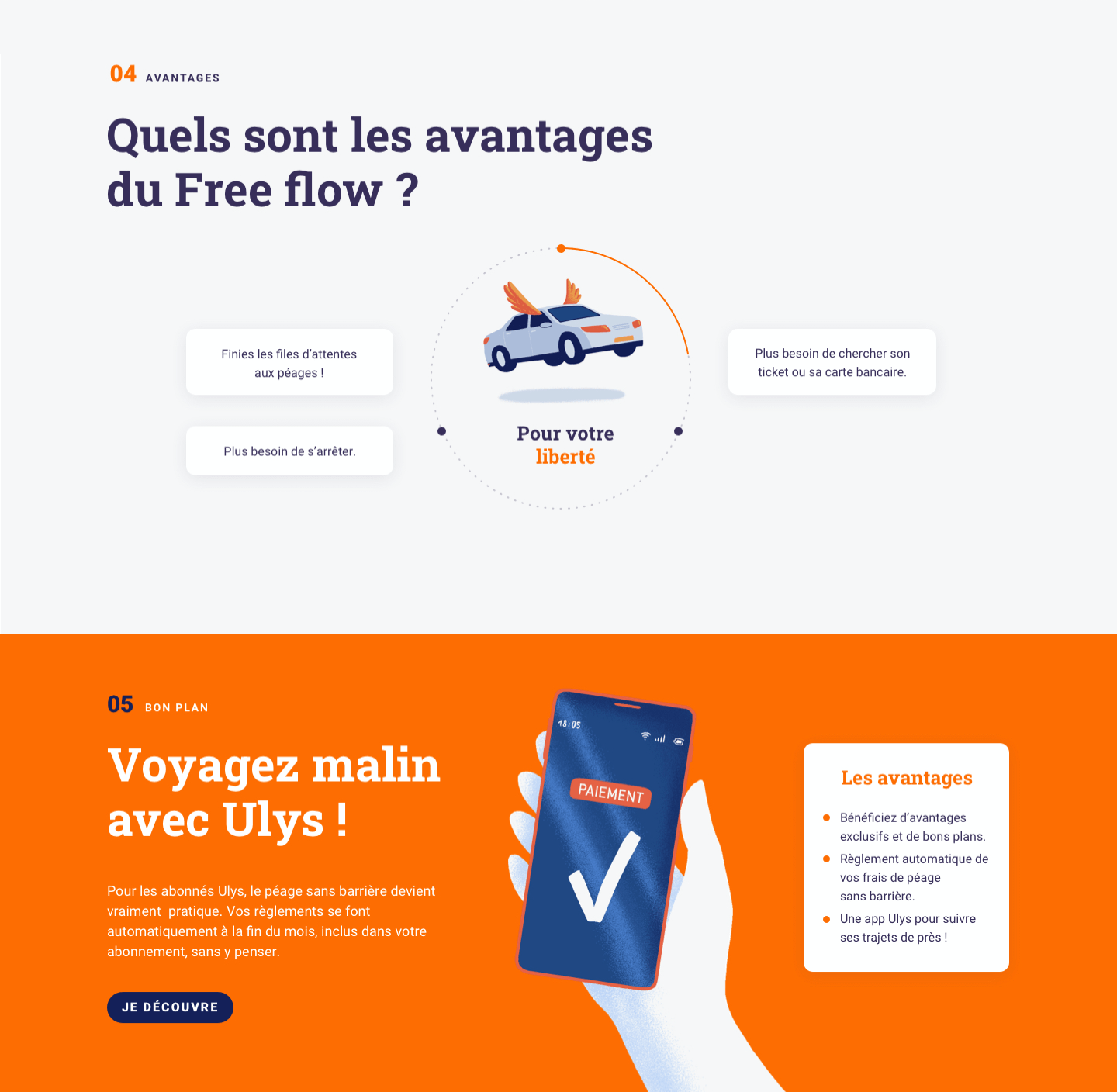 With the arrival of barrier-free tolls in France, or Free Flow, Ulys wishes to present this technology through an educational mini-site. Faced with the French very critical of the motorway concessionaires close to the brand, no missteps are allowed. In this delicate context, the adoption of this new product will only take place through fair communication that departs from the beaten track.