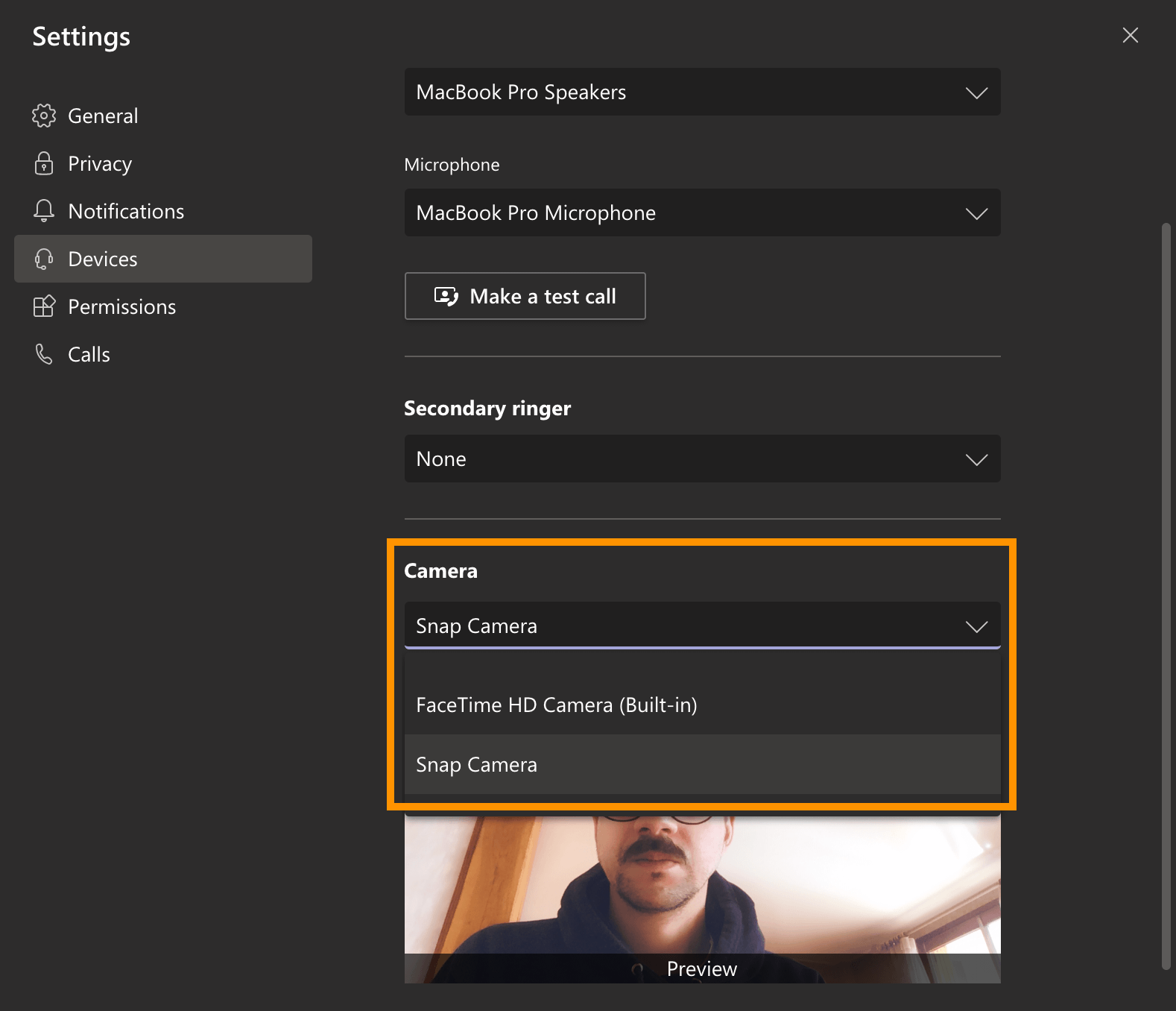 Sur Teams, allez dans ans le menu “paramètres” puis “Périphérique” Voici dans Teams: