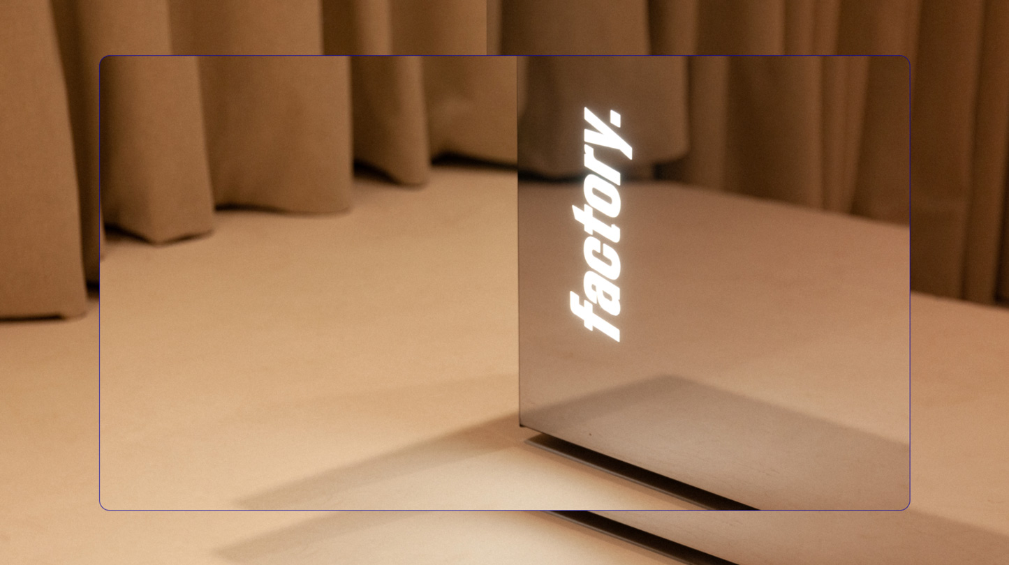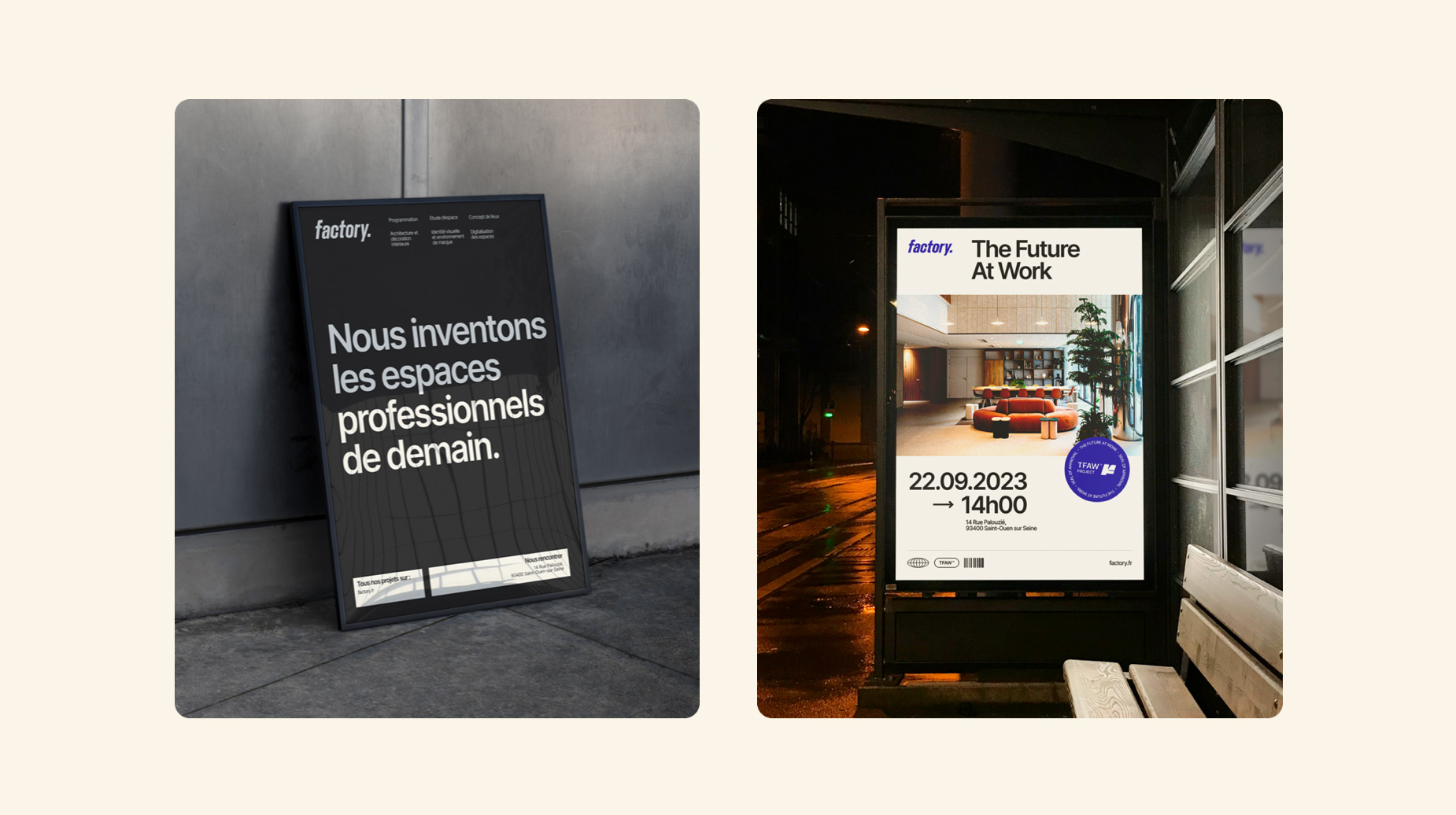 Repousser les limites de nos propres méthodologies de travail, nous a permis de concevoir un habillage identitaire en parfaite résonance avec la posture visionnaire de Factory.