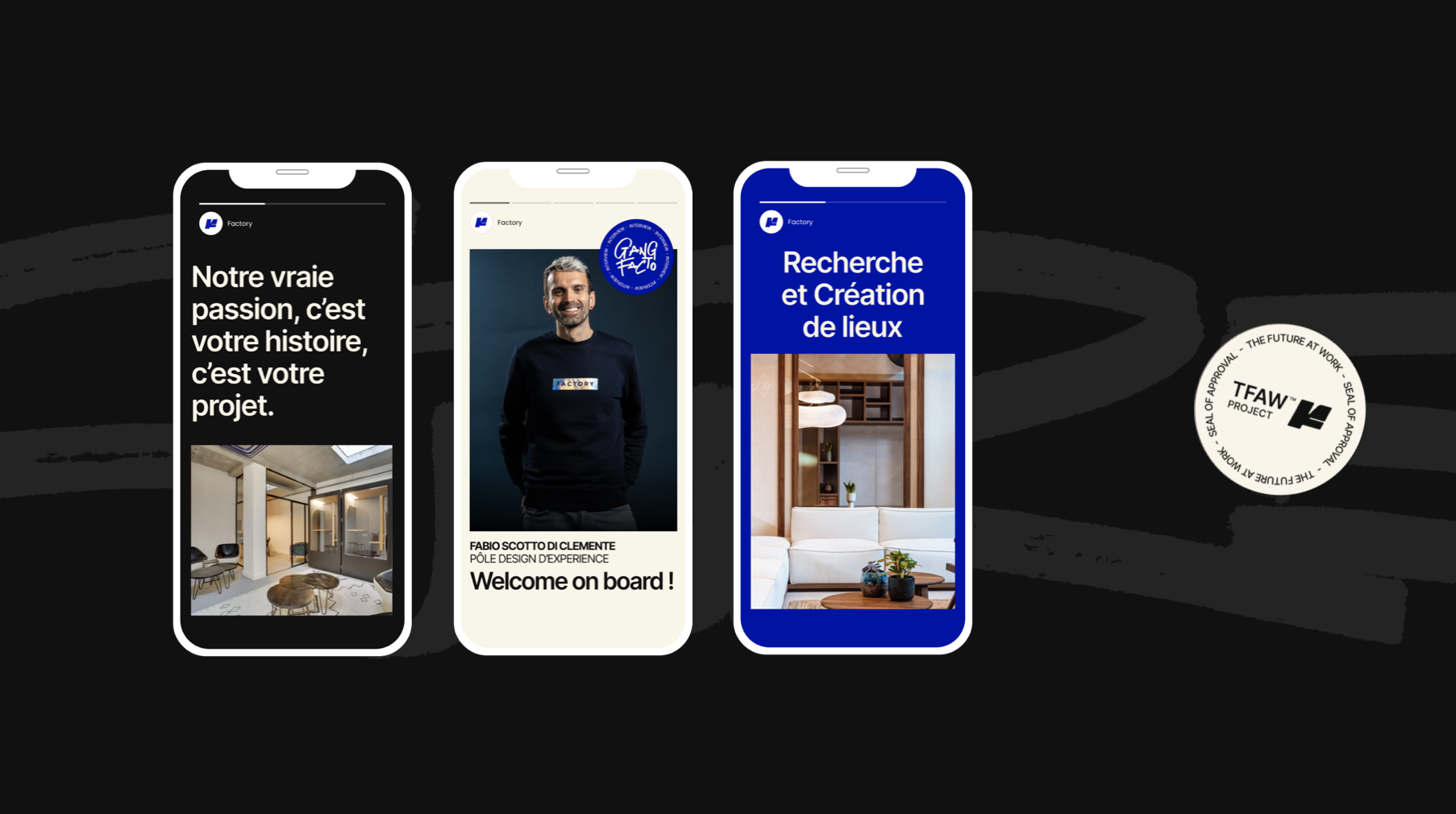 Notre rôle a ainsi été de créer un écrin identitaire, à la hauteur des ambitions de Factory, qui puisse incarner sa posture sociétale et vivre sur l’ensemble de ses canaux de communication.