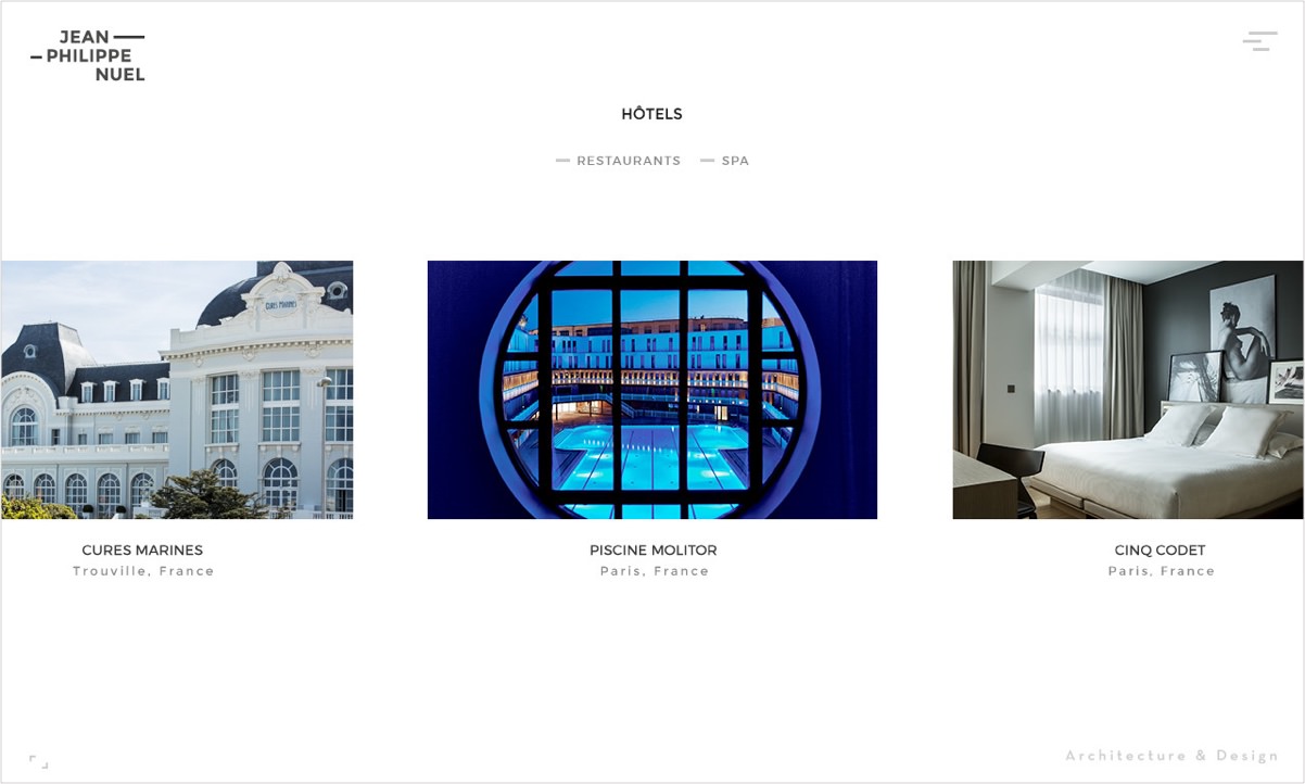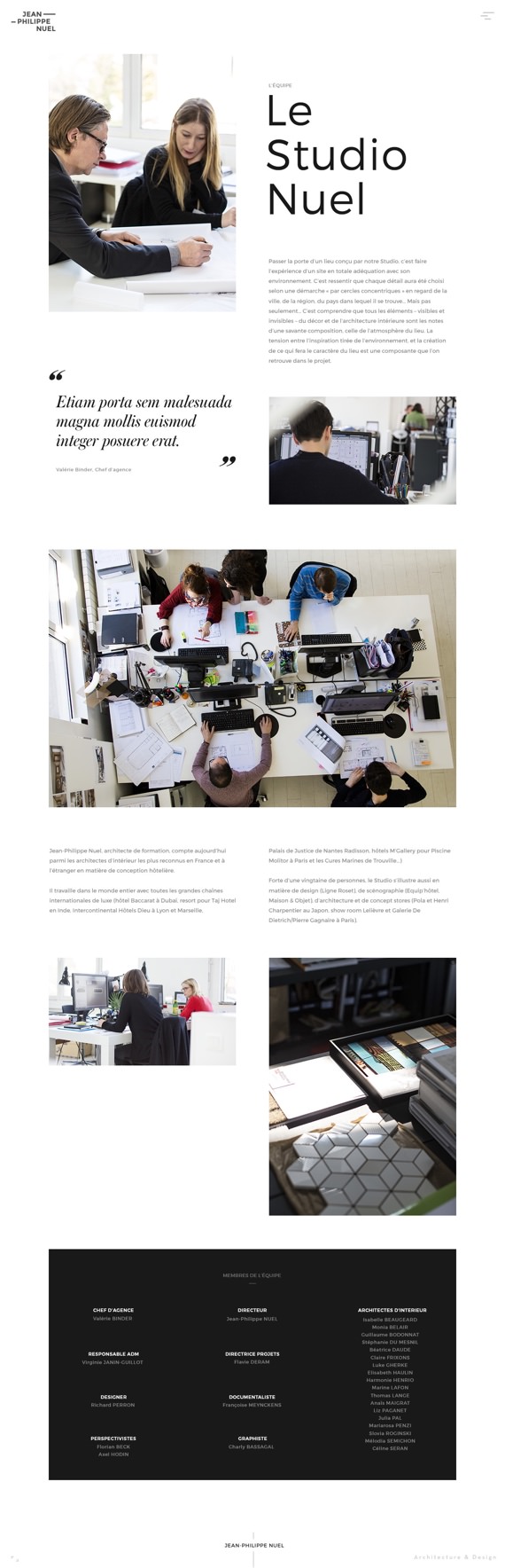 Le Studio Jean-Philippe Nuel joue avec les différentes signatures architecturales pour déceler les particularités de chacun. Nous nous sommes donc transformés en maître d’oeuvre afin de traduire sa vision dans sa nouvelle identité et de son nouveau site de marque.