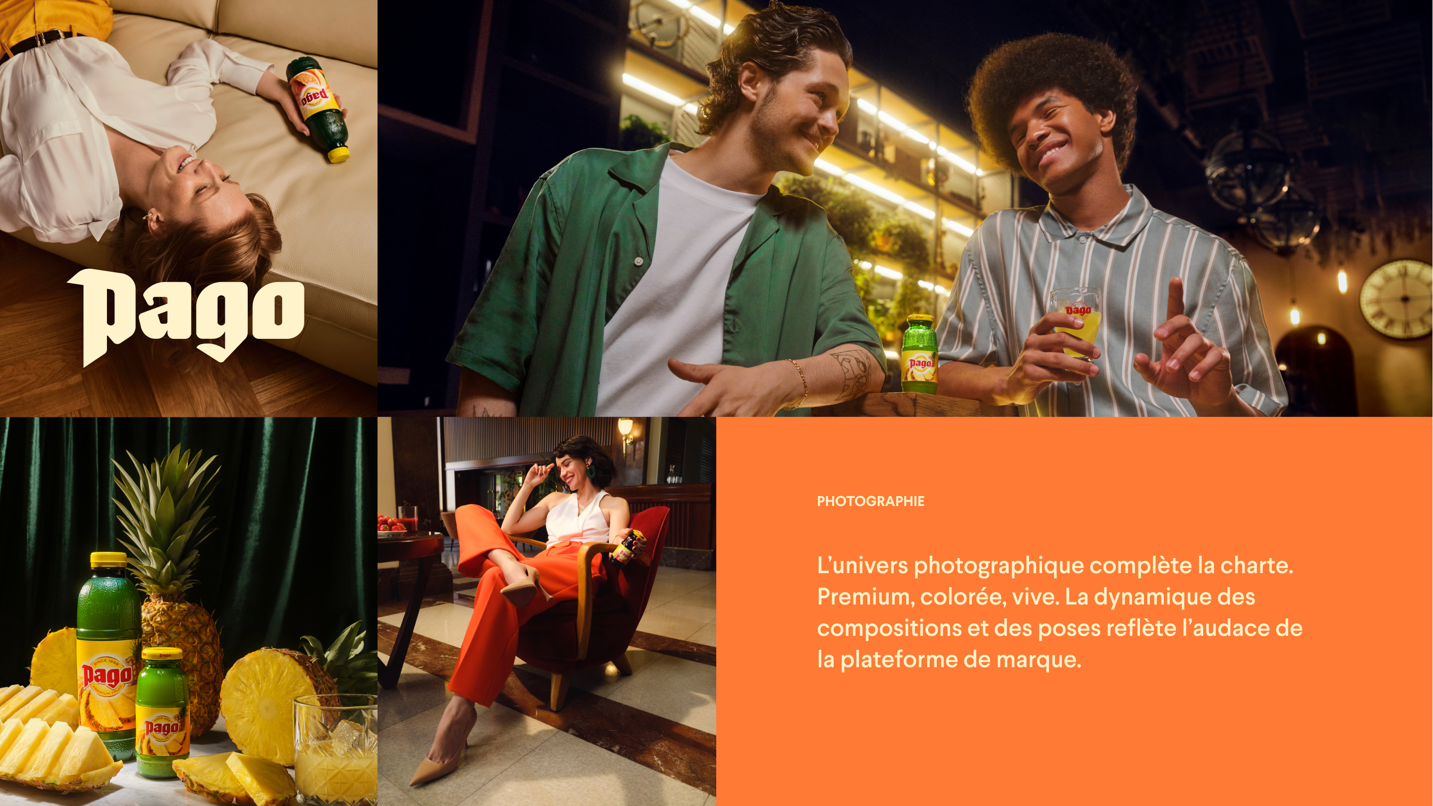 Avec ses recettes surprenantes, sa bouteille iconique et ses moments de consommation qui lui sont propres, Pago est le jus de fruit le « moins raisonnable » qui puisse exister.