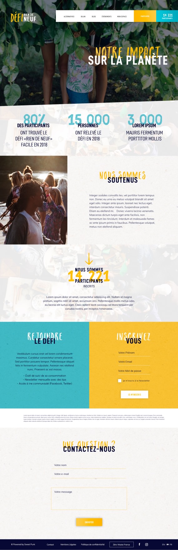 Pensée comme un outil, la plateforme accompagne l’internaute tout au long du défi grâce à une expérience utilisateur optimisée pour le contenu et les besoins des cibles. L’agence a mis en place un questionnaire de suivi permettant de suivre sa consommation (achats évités, matières économisées, calcul de son empreinte…). Une façon de rendre le défi ludique et l’impact de chacun concret.